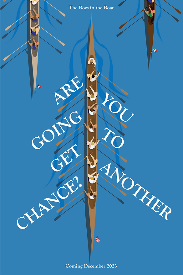 I made this poster for the movie, The Boys in the Boat, in my Poster and Information Design course in Fall 2024.